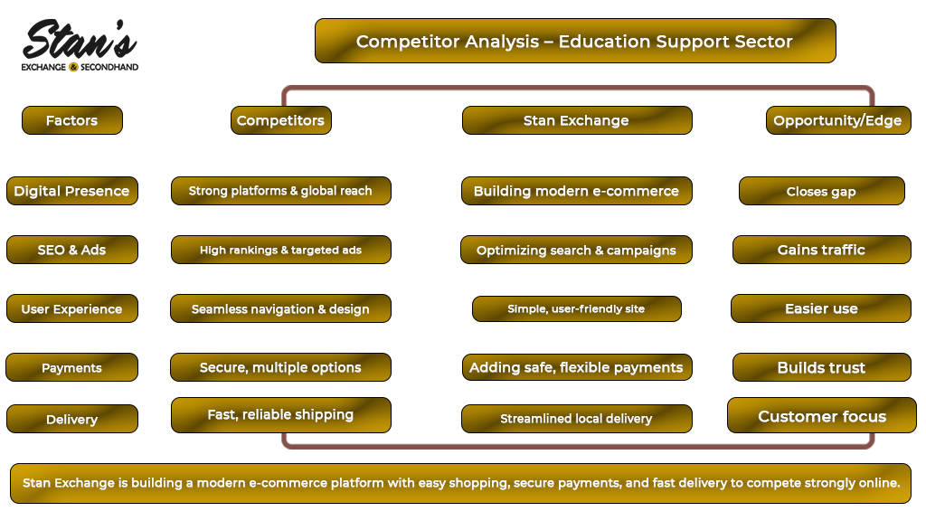 Stan Exchange had no existing e-commerce infrastructure, which meant customers had no way to browse or buy products online. The business risked losing sales to established marketplaces. Without a centralized system to manage inventory and orders, they couldn’t compete. This allowed competitors with strong platforms to dominate online visibility and consumer trust.