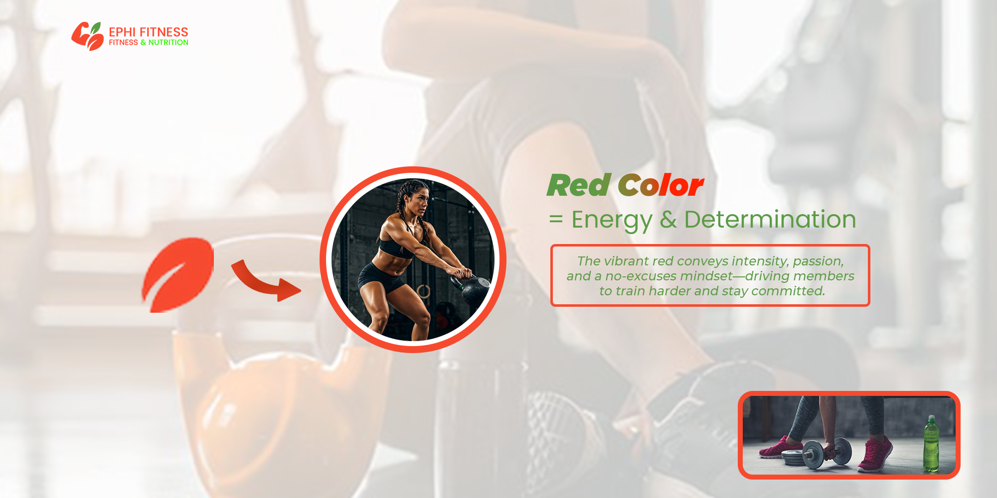 - Red represents passion, energy, and power — the fuel that drives workouts.